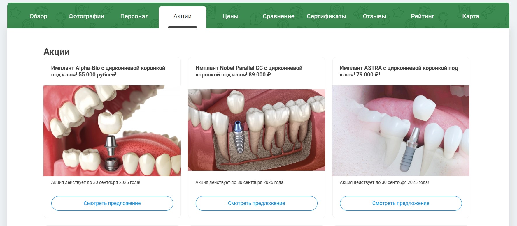 Если компания имеет конкурентные преимущества, мы можем их опубликовать на странице салона и показывать в таблицах в соответствующих страницах. Преимущества можно гибко настраивать для разных услуг. Правильная публикация преимуществ существенно увеличивает интерес клиентов, так как выделяет салон в таблицах и показывает, почему следует обратиться именно туда.